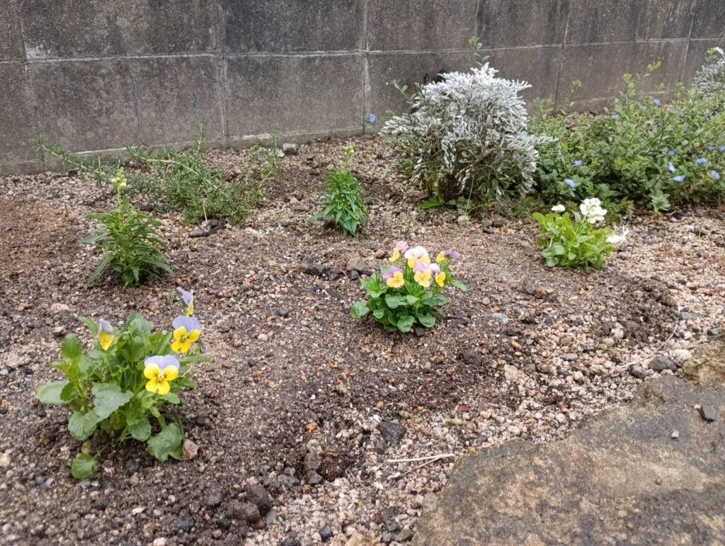 まだ小さな花たちですが、出かける前や帰宅時にふと花壇を眺めると、自然と気持ちが明るくなります。