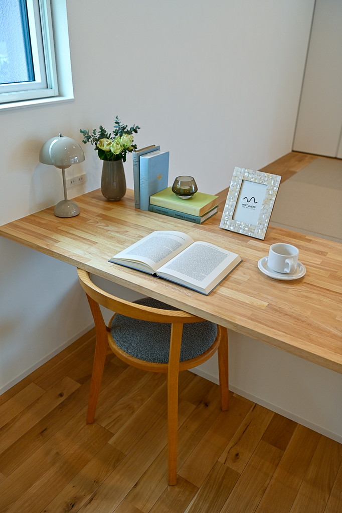 寝室の一角に設ける書斎スペースは、日中の喧騒から離れ、よりパーソナルな時間を確保しやすいという利点があります。