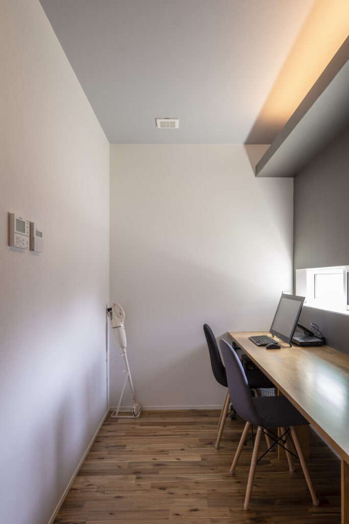 家族の生活動線から少し離れた、静かな場所に独立した個室書斎を設けることで、高い集中力を維持できる環境が手に入ります。