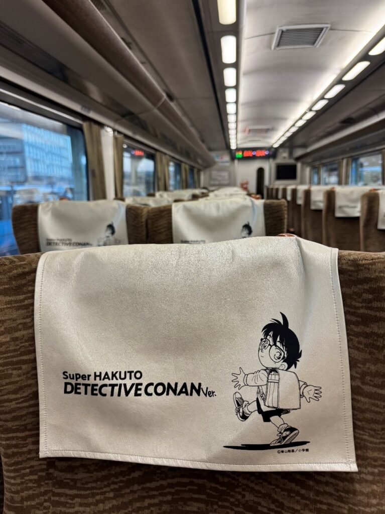 倉吉を始発で出発し、スーパーはくとのコナンラッピング列車に乗って姫路へ。
